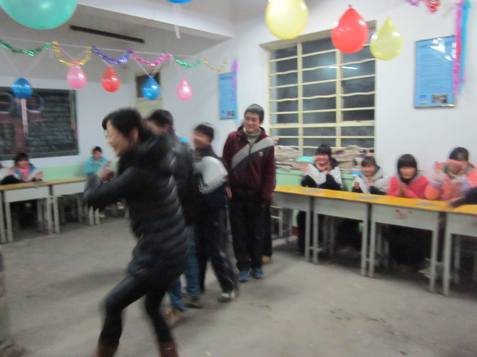 一切准备就绪,班主任宣布晚会正式开始,大家都大展身手,拿出了自己的绝活:有小品、有歌曲、有舞蹈,最后是自由狂欢的时间。最精彩的要数小品了,逗得大家捧腹大笑。老师们也被这欢乐地气氛所影响,高兴地唱了几首。