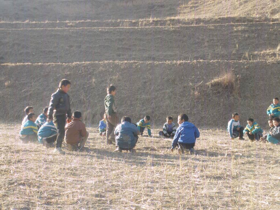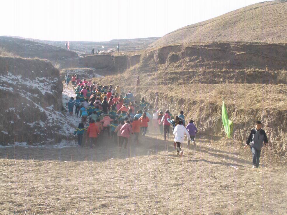 同学们一路小跑来到了山脚下。老师将同学们分成男女两队,然后又将两队进行了分组:三四年级为一组,五六年级为一组,七、八、九年级为一组。一切准备工作就绪,就等着比赛了。