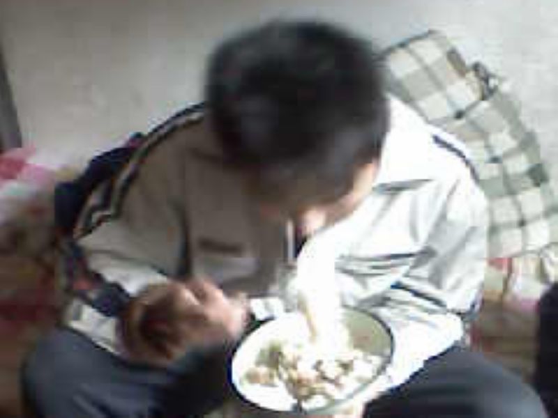 我常听爷爷讲:“男子吃饭如虎,女子吃饭如鼠。”可这位男生却正好相反,你看他吃饭的样子,一点也没有男子气概。也许是饭菜真的不可口。