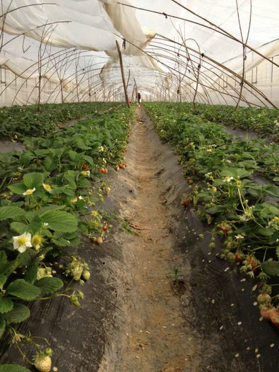 这两天按理草莓还没有成熟,可是现在啥东西都讲早,讲商机。大棚里的草莓已经逐渐变红了,真是格外诱人,农户干起活来也格外也力气,因为这东西就是她们的金蛋蛋,现在的草莓价格在十几元吧!大棚里有的草莓正在开花,鲜绿的叶子茁壮的在生长着。