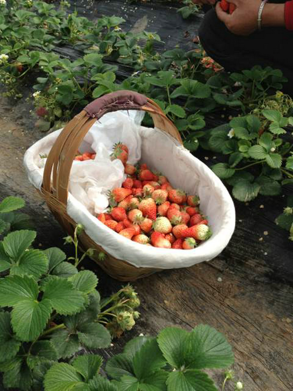 提着篮子都不想走了,不是沉的提不动了,而是见到这些可爱的草莓,都忍不住想偷偷的尝几个,虽然知道这没有清洗,不卫生,可却挡不住这草莓的诱惑。
