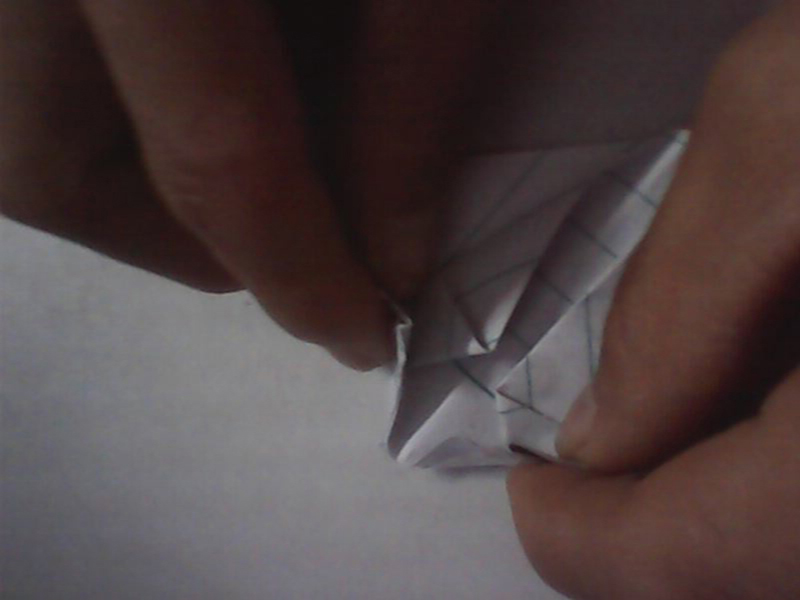 它的步骤也是很简单的,要先把纸拆成正方形,然后把它对折两次,再沿着折痕把它折成三角形状的,然后把三角形一面的两个角折回来,再把后面的两只角像折飞机似的对折,再把那两只长角又折回来一共要折两次,然后又把纸张翻过来把两个尖角对折,最后,撕下一点点胶布把它封起来(注意:胶布只能粘到那两只角),就这样这只兔子的雏形就形成了。