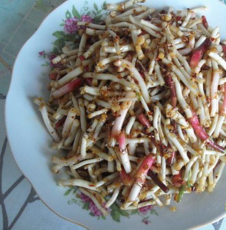 回到家我要亲自动手做一盘凉拌臭根儿,看着有的偷肥又大的臭根儿真爱人。首先要去掉没用的老根,再用清水洗出来,还要把节长的须拔掉,洗出来白白的,然后在把长短不一的切成三四厘米长的节就可以了。最后加入各种调料拌均匀,一盘香甜可口的凉拌臭儿根就做好了,看着真诱人啊!
