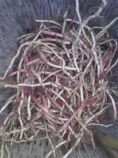 臭儿根,也叫节儿根,是因为一节一节的,其实臭儿根不臭的,每当春天来临的时候。我就喜欢和妹妹拿个小锄头和小刀到田间地头去挖臭儿根,这种野菜其实很容易被发现的,因为有红色的叶子,我和妹妹这儿挖挖那儿戳戳,跑了大半天,也只是抱着好玩的心态,开始很认真挖,后来就没兴趣了,挖的最长的有十几厘米的短的不到三厘米。还好开始挖的比较多够我们吃了。