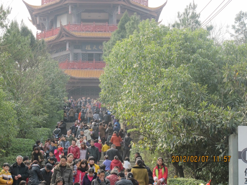 我们一出门就开始奔向西武当山。在玄武广场上人流涌动,最令人醒目的是一群老太太的表演了,她们一起跳的腰鼓舞实在是精彩极了。很多老人和小孩都在那兴致勃勃地观看表演。现在的“游百病”已经不再是单单的游百病,把病痛抛在野外了,已经有了一个更重要的内涵————健身。