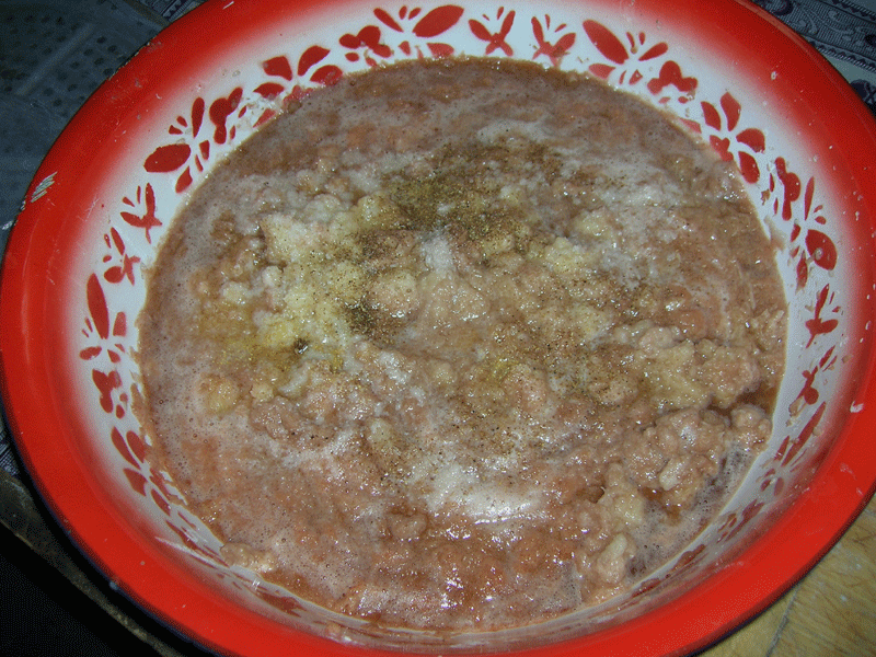把水倒在锅里,在锅里加入一点盐,把水烧开。挖上一盆子面一手拿着擀面仗,在锅里不停的搅,一手拿着面慢慢的撒入锅中,连续撒入若干次,等到锅里稠密了之后,需要一个人帮忙使劲的搅,直到熟了为止。