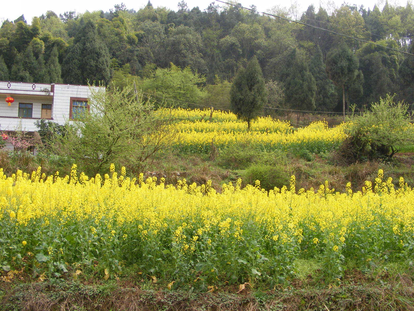 在田间要说最显眼的还是油菜花了吧!现在油菜花到处都是,金黄金黄的,好看极了。一眼望去,那油菜花这儿一块,哪儿一块,它们在树木绿色的映衬下,显得无比亮丽,微风吹过就成了金色的海洋。再向远看,那油菜花就像一条条金色的丝带,好像世界的沉浸在金色当中了。