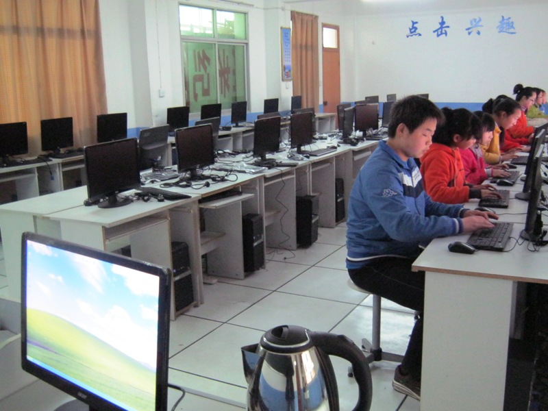 再来写西部故事时,看见微机室里就已经不再是原来那些银灰色的笨重的电脑,取而代之的而是一排排崭新的黑色电脑。