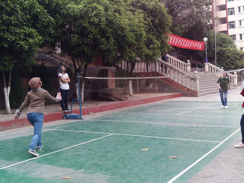除了打乒乓球之外,就只剩下了羽毛球了。打羽毛球和打乒乓球相比起来,打羽毛球要累得多,要跑起来才可以打。两个人正在对打,打的还很不错,旁边观看的同学还给她们鼓掌,在场地外有树,她们竟然还把羽毛球打到了树上。在羽毛球场地外,还站着一个裁判,裁判还是打球高手之一,所以让她来当这个裁判。在打球的人就不用记分了,裁判专门给记分。