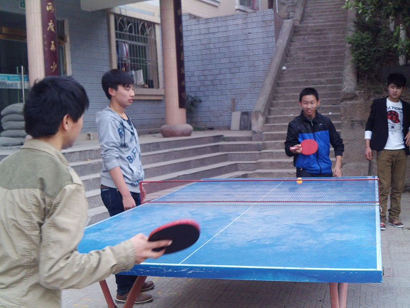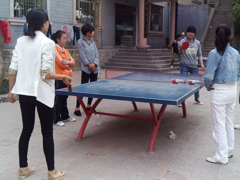 活动开始,首先是女生在打乒乓球,正在打球的她技术不是很好,跟她一起打球的好朋友还在教着她。旁边站着的都是打乒乓球的,看着别人打球,给她们加油。在这同时,自己也学着点怎样才能打好球。