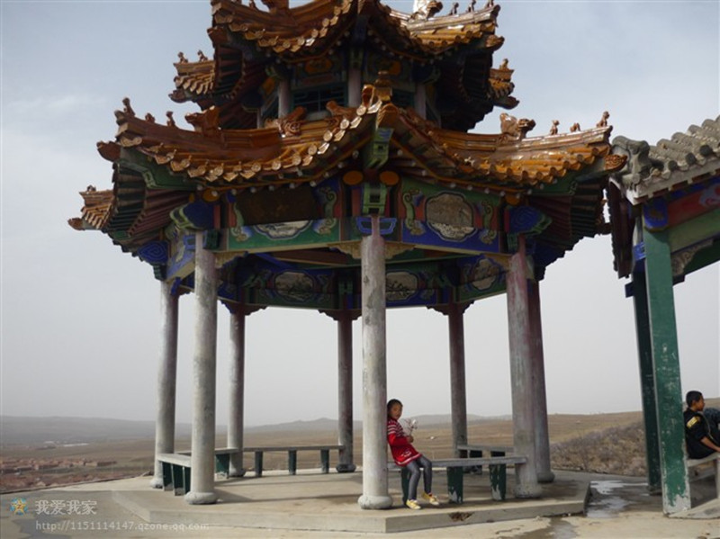 在山顶上,还有一个专供登山人休息的凉亭。八根柱子支撑着一个双层的八角亭,为人们遮风挡雨,长长的椅子为人们提供歇脚的地儿。麒麟山,我们尚义人民的骄傲。