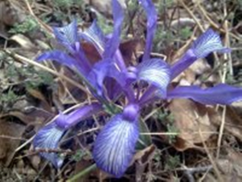 山路并不陡峭的,再加上为了人们攀山,山路上已经修建了台阶,这样走来更是毫不费劲。不知不觉中,已经来到了半山腰。远远地闻到了杏花淡淡的香味。来登山的人也不多,偶尔可见三三俩俩的结伴而行。远望山坡已经是一片绿色了。这是听得小林一声大叫:“啊,好美啊。马莲花。”我们一下被吸引了了过去。果然一簇马莲花开在山路旁,没有鲜花和她争奇斗艳,没有小草为她作陪,独秀一枝,足见其珍贵。