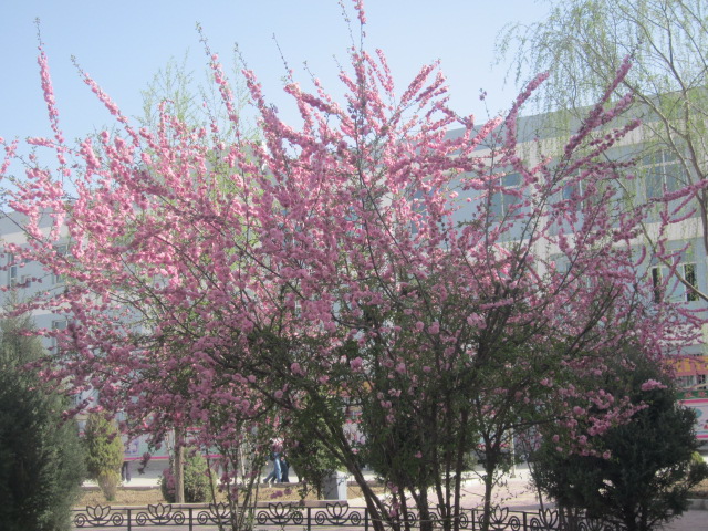 春季的学校犹如一个花海,既然我们生活在这个花海中,为什么不去爱护她呢?
