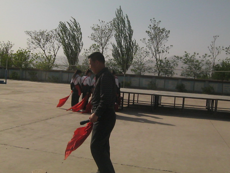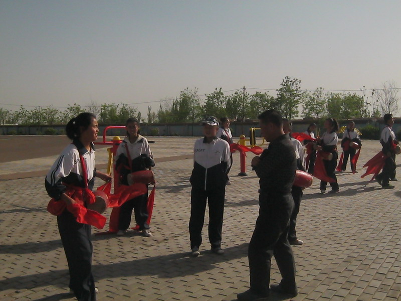 白老师让我们自由练习腰鼓,他在一边为我们改正不足,争取让我们做到最好。我们顶着烈日训练,虽然很累很渴,但是我们的心里是高兴的,因为苦完这一周,我们就大功告成了。白老师说话很直,但是很幽默,我们都十分喜欢他,只不过他常常出口伤人。但这也是为了激励我们嘛!所以我一般都不介意。