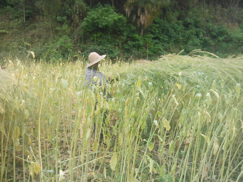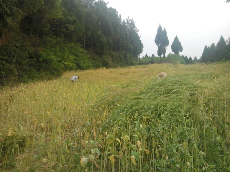 等到奶奶把那一块地里的油菜割完,再回到家里吃饭。吃完饭后,他们连一口气的时间都没有休息,又到了地里,开始忙了起来。今天,天气不是很热,他们就一直在地里忙着,连开水都顾不上喝一口,头上戴着"草帽",汗水从头上直接往下流,流在脸上直到下巴,在流到脖子上,眼看着他们割油菜那么辛苦。看着地里的油菜越来越少。