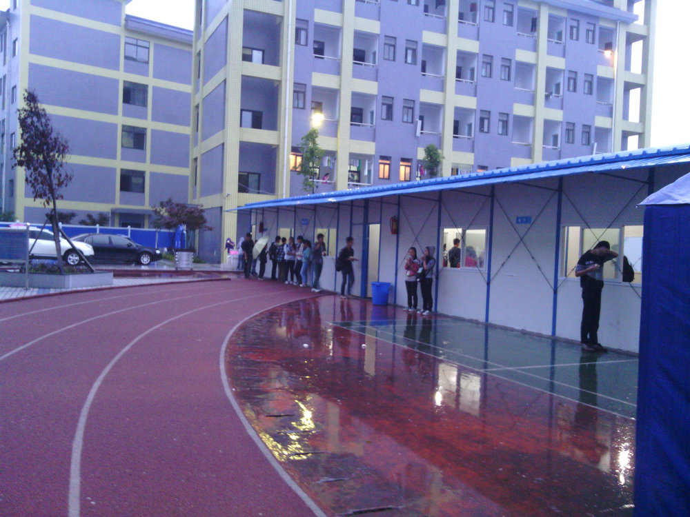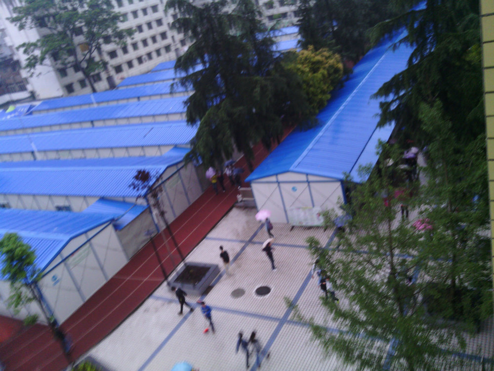 4.20特大地震不仅给学校带来了麻烦,也给我们学生带来了很大的麻烦,而且我们来说,在30多天后就要面临人生的一次挑战——中考。为了不影响我们学习学校在几天之内就搭起了许多板房。