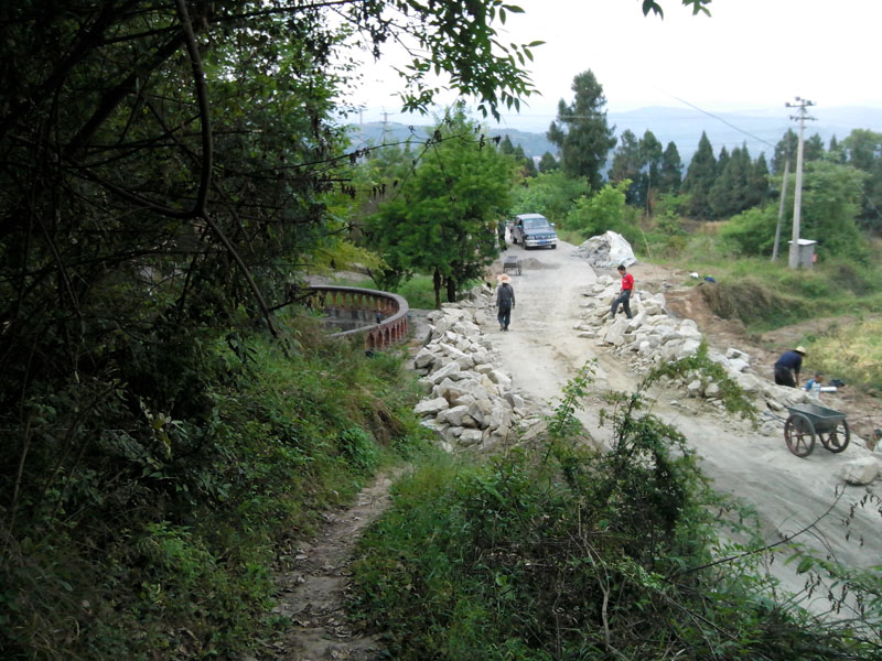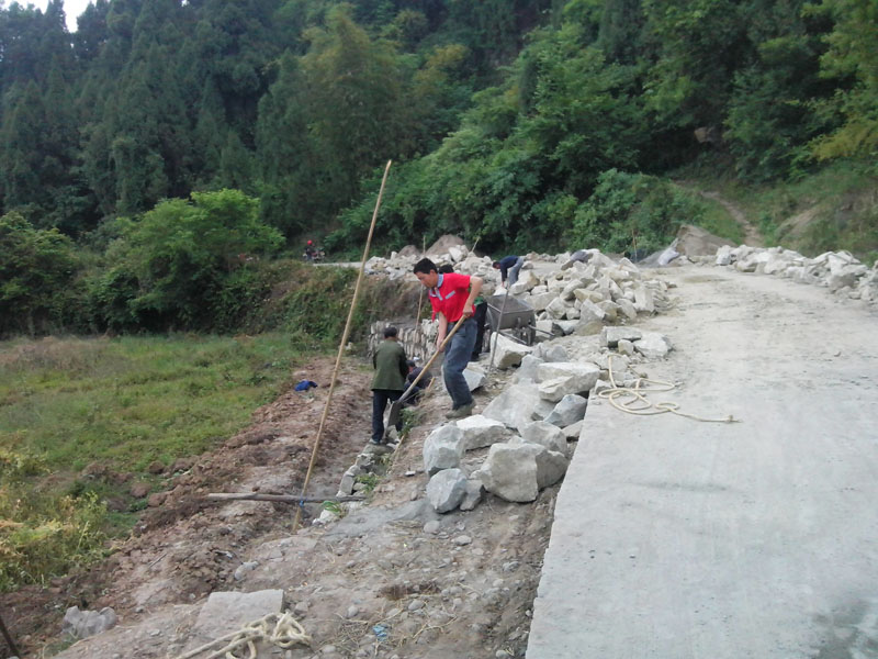 我还是回到家里,问问爷爷为什么吧。爷爷告诉我说,那是一个弯道,弯道太大了,为了车辆的行驶,需要扩宽路面。公路的下面是一块地,为了扩路,只好占用那块地了。在地里填上了石头,地到公路的高度大概有两米高,叔叔们用石头砌,砌到与公路一样高。没有挖土机,叔叔们都是用绳子,铲子、钢棒等东西来砌石头。
