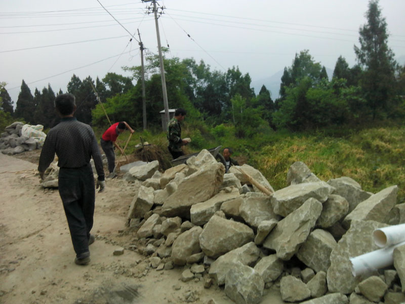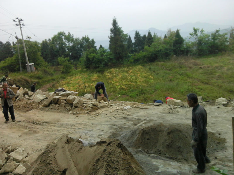 人多力量的大。说的一点都没错,路边堆着那么多的石头,这会剩下一点了。叔叔还背起背篼在背着石头,过不了多久,路边就不会再有石头了,旁边的石头也都快要砌了起来,这会的路中间都堆满了沙和水泥,叔叔们准备泥路了。泥了路,车子就不能过了,要等太阳晒干之后,就可以过车了。