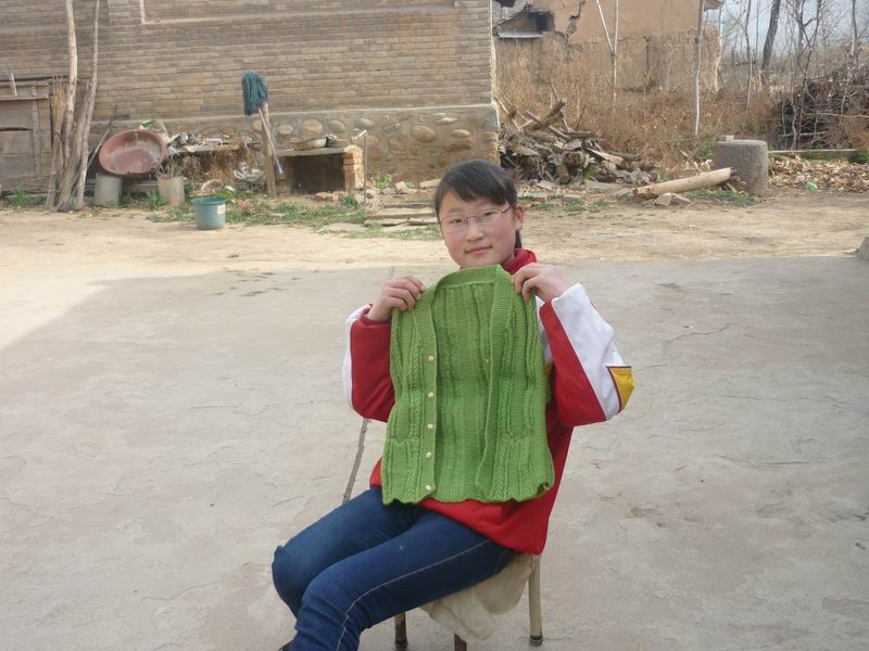 妈妈看见了,最后给我讲了一些技巧,还给我示范织了几圈,鼓励我继续。经过妈妈的帮助终于有了起色,经过了好长一段时间,我终于织好了我的第一件作品。