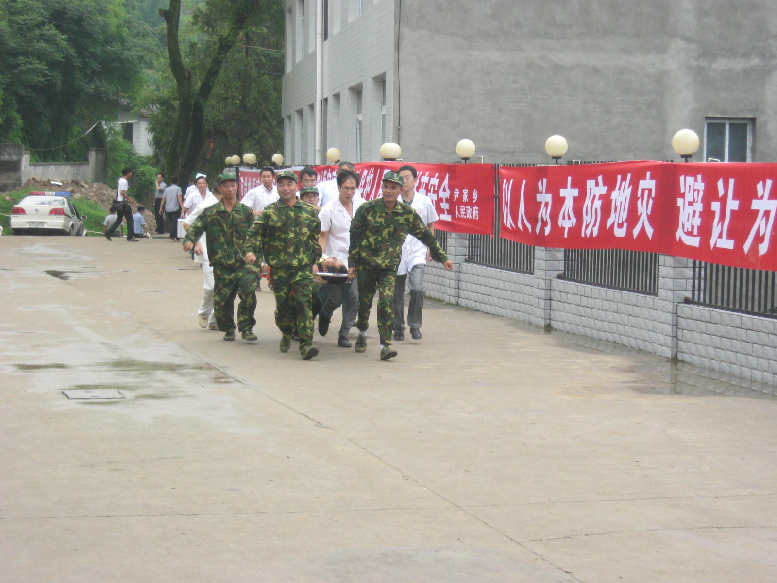 学校的教学楼有左右两道楼梯,每班的学生分别有对应的出口,分为两列向操场奔去,在另一边有主持人用激昂的声音分大家进行现场解说,旁边的音响中发出震耳欲聋的雷鸣,大雨狂舞的声音,天空显得更加阴暗,让同学们不禁心慌意乱。正当我们焦急的时候,一队身穿迷彩服的民兵迈着整齐的步伐,向主席台跑去,在那坚定的脚步声和豪迈的回应声中,让我们顿时平静了许多,因为我们觉得那高大的身影,就像是我们坚强的后盾。
