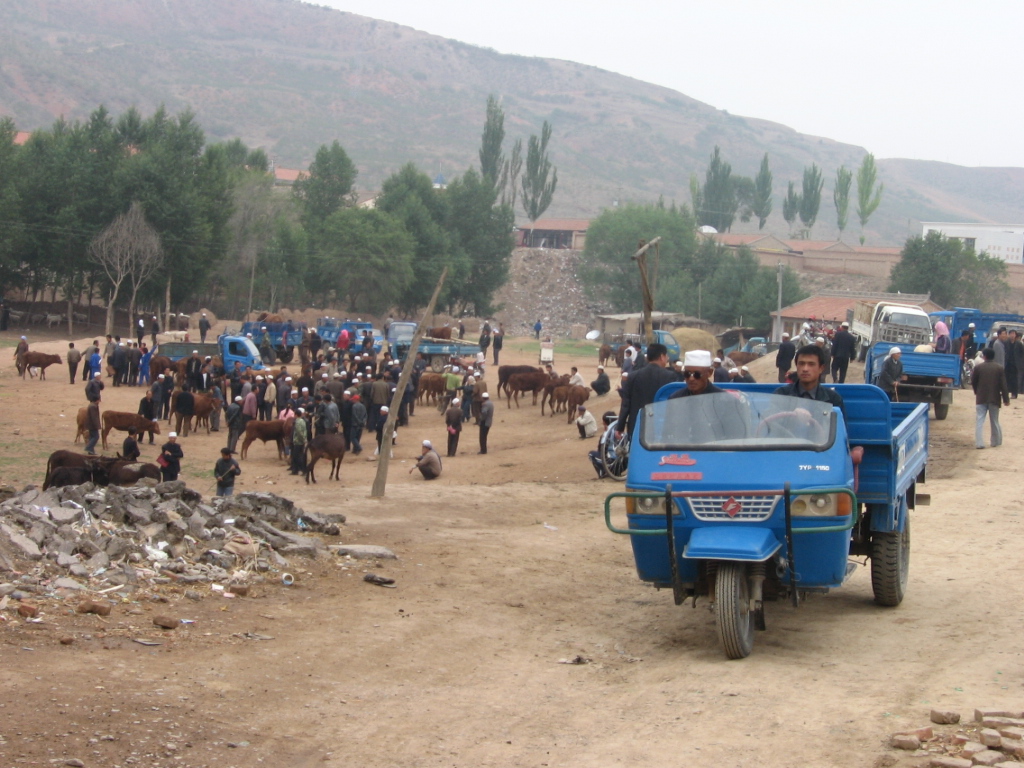 我们这个小山村一到逢集,人特别多。这个四周被群山所环绕的小牛羊市场也不例外。看,人们那儿一群群,这儿一组组有规则地进行交易。大多数是回族男性,头戴统一的白帽,各个神采奕奕,从不约束。再看看旁边那些精神饱满的牛羊们,静静听从主人发令。