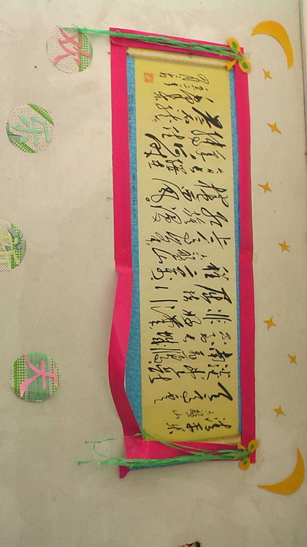 再看左边的墙上,一个金丝围成的“GIRL”标志着我们宿舍的11朵花。那”东坝中学学生宿舍公约”则时刻提醒着我们,要求着我们,规范着我们。