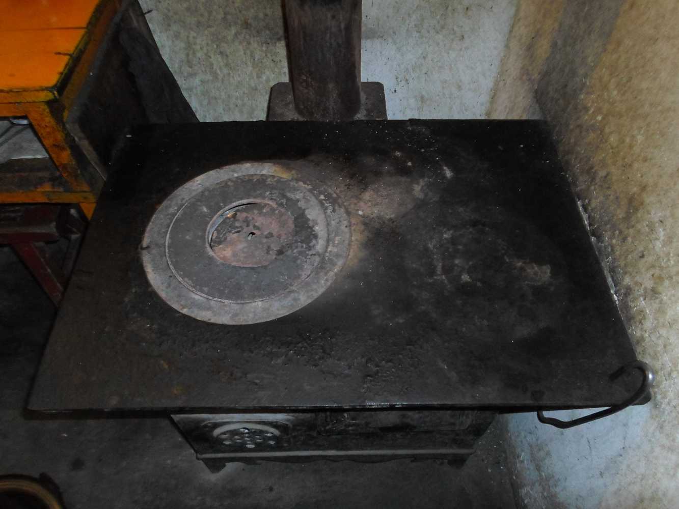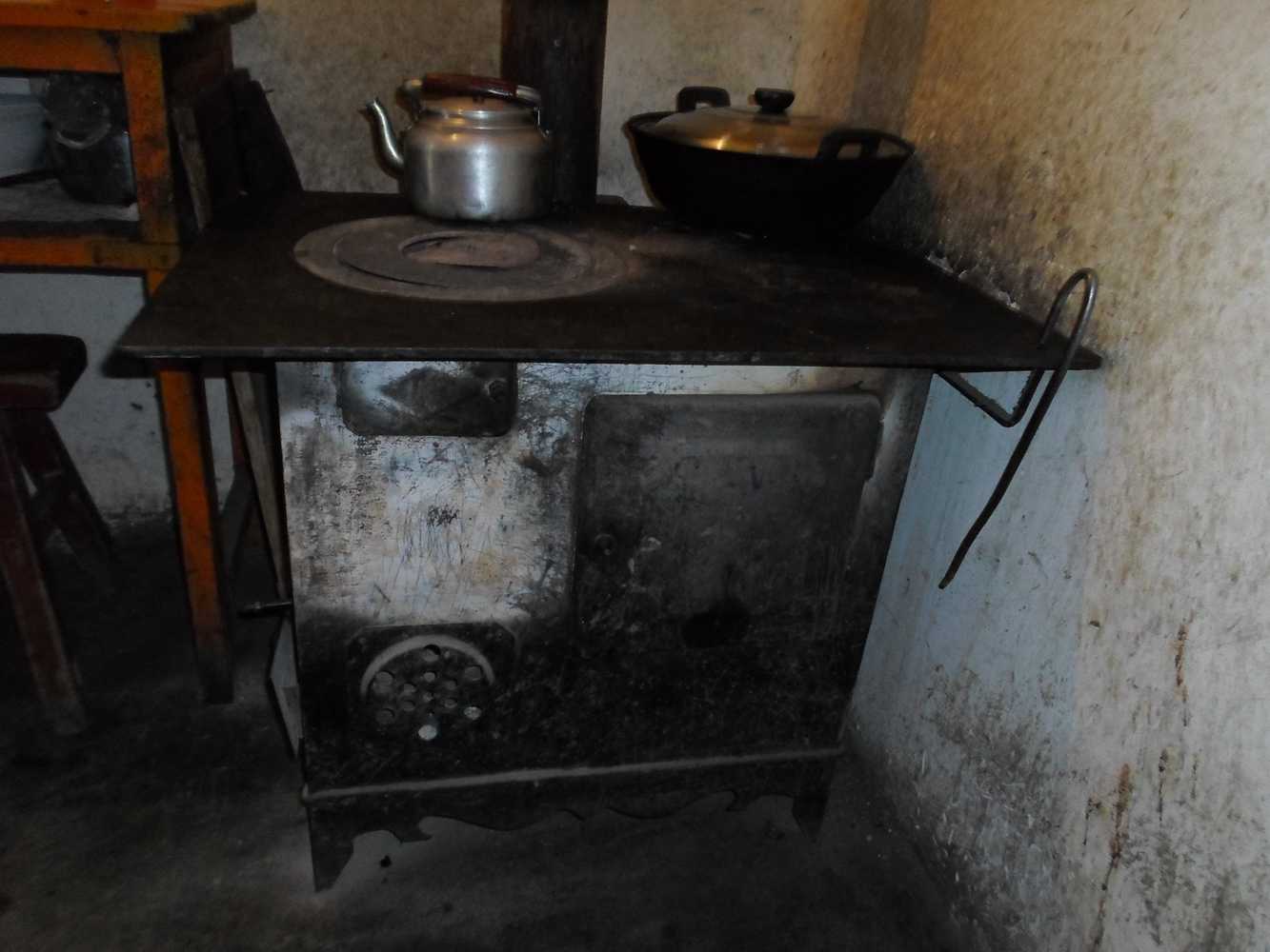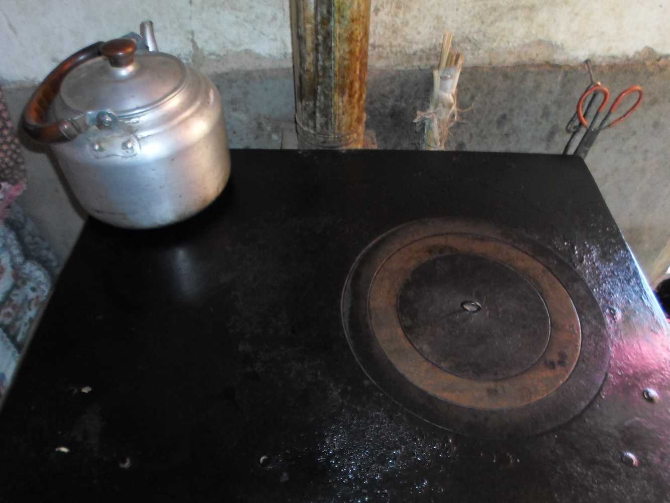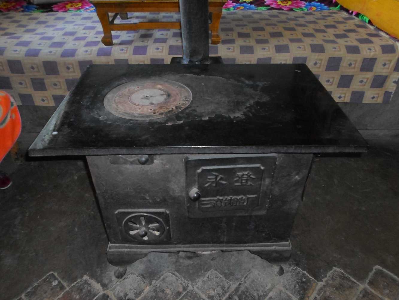 它的表面有一个圆的小洞,那是用来防火筒的,是跟长长的圆柱形空心的铁皮柱,是用来出烟的地方,他就好像是一个支撑着房顶的柱子,支撑火筒的便是炉盘了,,它既可以烧水又可以取暖,还可以做饭,每天早上就在那里面生火,还可以根据做的食物将大小的炉圈可以换,它的表面一部分空出来了,还可以放茶壶、锅等。