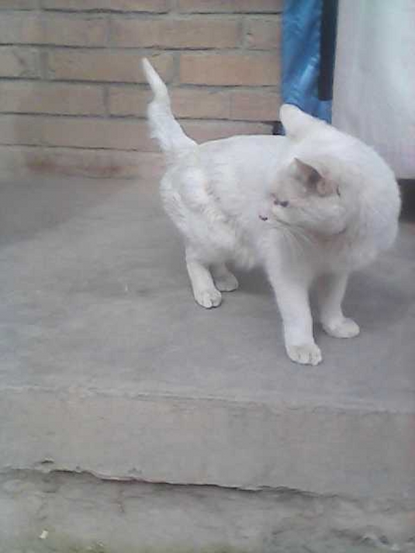 它还有一双蓝色的眼睛嵌在脸上,白天它的眼睛眯成一条线,晚上如果停电了,到处黑的伸手不见五指,那时你就会看到两个闪闪发光的小灯。实际上那不是真正的灯,而是小猫的眼睛,这也为它在夜间抓老鼠提供了帮助。