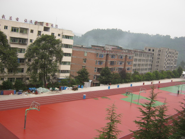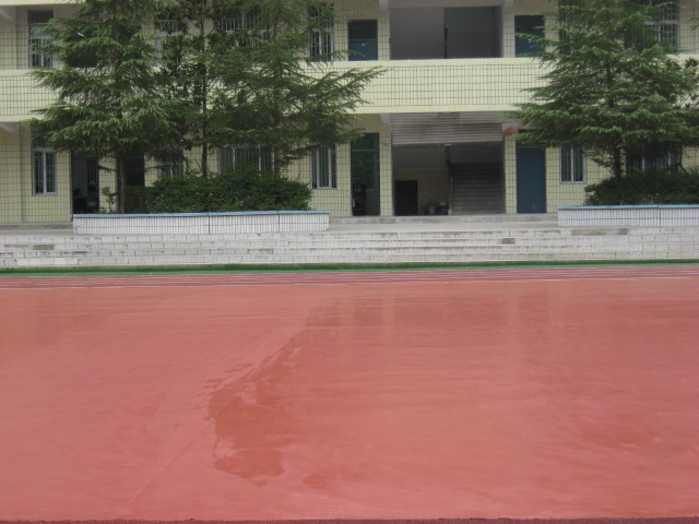 走在橡胶操场上,踩着软绵绵的橡胶跑道上就像走在地毯上,红色的跑道镶上绿色的花边,和同学们的欢声笑语仿佛连成一片。在阳光的照射下,学校变成了五彩斑斓的魅力世界。篮球场也用红色的油漆漆的更平展了,现在走在上面再也不用担心会被石子绊倒。