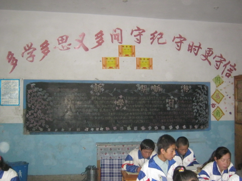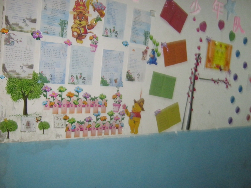 站在讲台上,墙的两壁上,是我们每一个队的杰作,墙壁上的花花绿绿,是所有队用智慧弄成的,在一个一无所有、空荡荡的墙壁,现在变成了一个五光十色的美丽墙壁 ,是教室变得更生动、别有风味的童话世界。