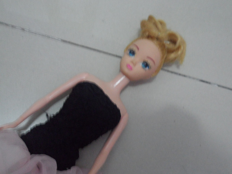 这一天,妈妈收拾屋子,把爸爸穿过的一件黑色秋衣团起来,说是穿破了,要扔掉,我看了,突发奇想,给美芭比做一件黑色的衣服会好看吗?试试再说。