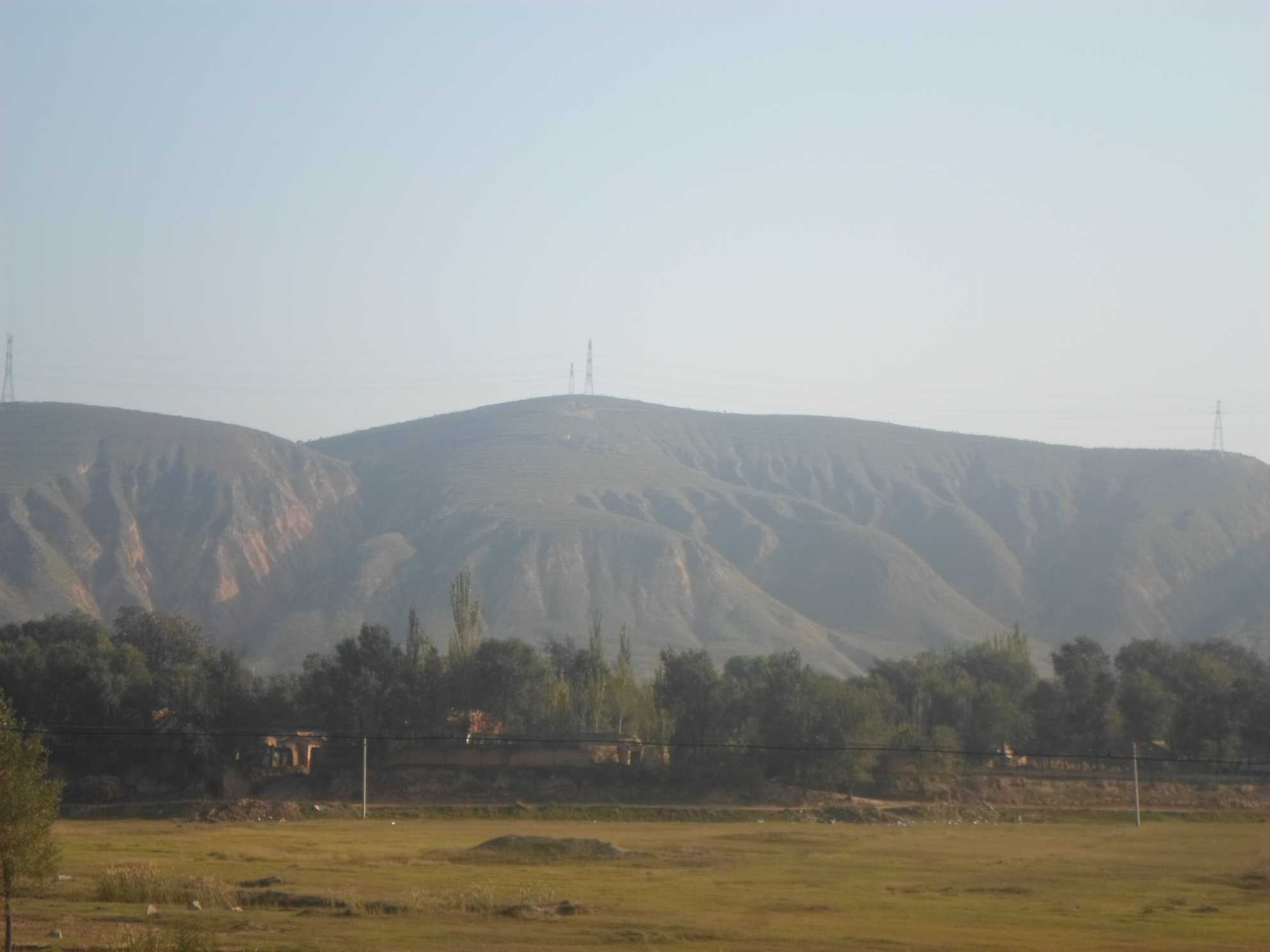 固原四面环山,在山上和山下都种植了许多树木,在山的周围住着些村民,在门口种了许多耐旱的植物,因为这边比较缺水,有些植物容易干死。