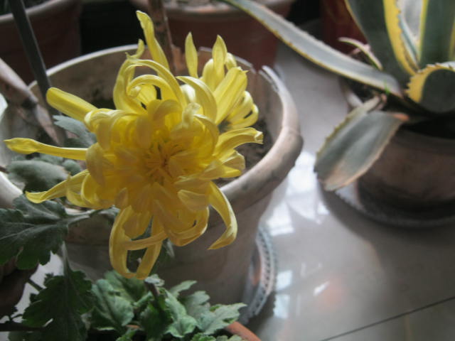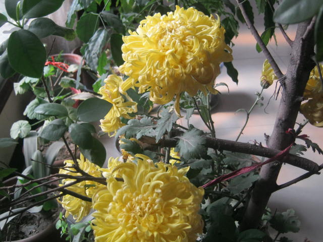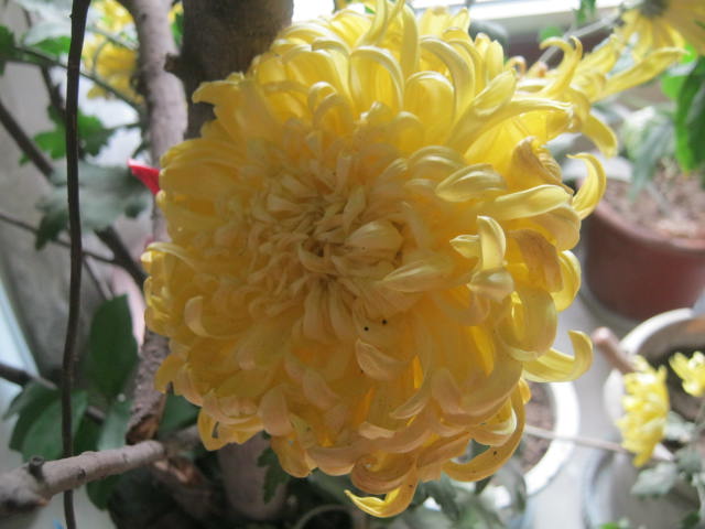 我家有一盆黄菊花,在秋天这万物凋零的季节,我家的菊花却傲然挺立。