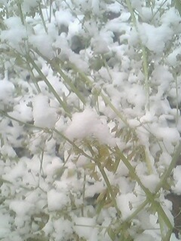 雪落到了同上,使那穿着黄衣服的山变成了豹纹形,然而却是白色居多,正应了那句"青山原不老,为雪白头"的名句啊!有了雪的山,格外地美,山天一色,有蓝天镶上了一道银边,多么地绚丽啊!在菜轩名,我发现了一抹绿色,那一抹绿色就是秋天收麦时撒下的麦苗,没想到它竟生长出来了,麦苗的头上很艰难地挑着一鬓儿白花,白中夹绿,真是为这个美丽的冬天添加了一点韵味