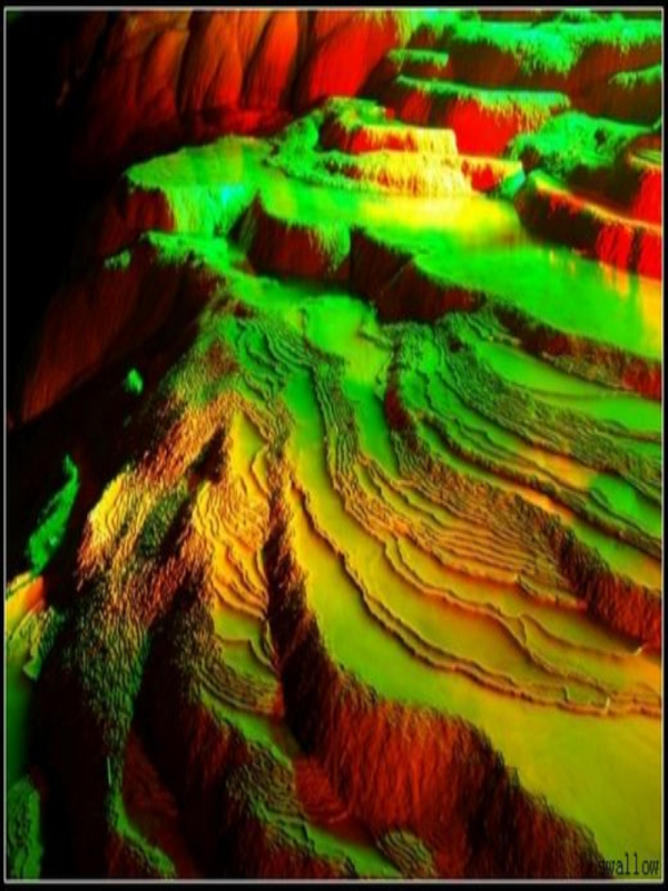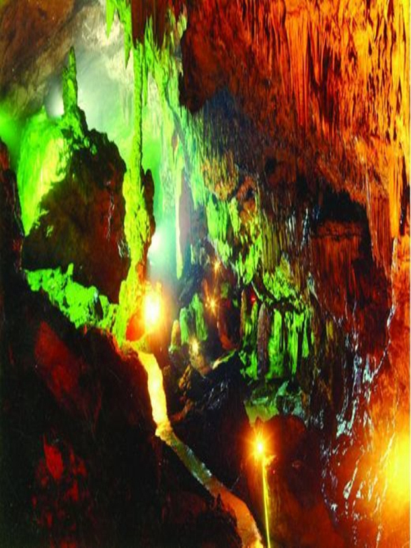 一进洞门,便是“雪溪龙宫”在霓红灯的照射下,千万钟乳石像怒放的莲花从空中倒垂下来,悬挂的莲花潭上,碧潭金波粼粼,花瓣晶莹明亮,五光十色,万紫千红,胜似瑶池仙境。莲花潭北端是一座幽清的小山峡,峡壁似削,水清如镜,峡谷幽深,耐是人寻味。峡顶一缕斜阳飞来,照在莲花潭上岸畔的数墩似玉的石笋上,一幅“金秋晚照”的丰收景象,令人神往。弯腰从石门进去,人们叫它“矮檐”。