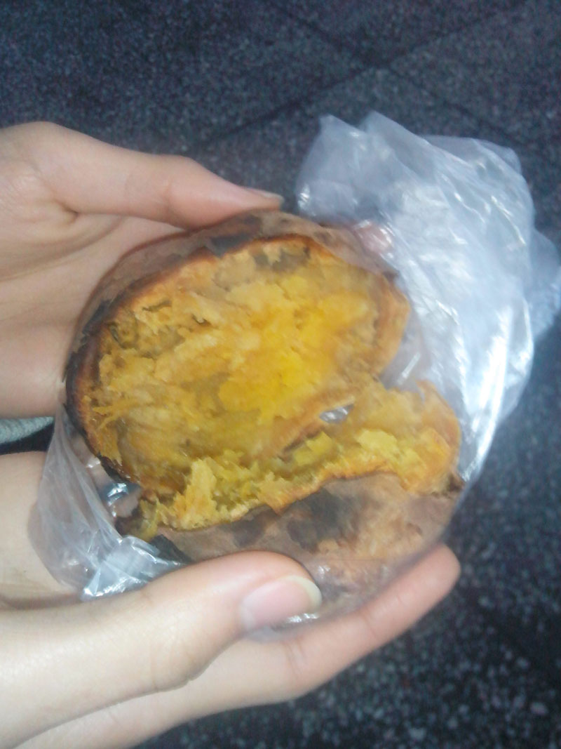 哇,从中间搬开红薯,好香,浓浓的红薯味道,别看外壳黑黑的,里面可是黄酥酥的,恨不得咬上一大口,尝尝味道,只是太烫了。 烤好的红薯,就是这样。