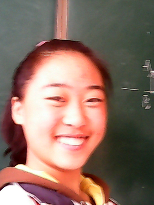 她—郭晓霜。一头飘逸的黑发让人眼红,总在徐徐吹来的风下漫天飞舞,像一丝瀑布飞旋而下。圆圆的,黑俊的脸上总是灿烂,美丽,如鲜花开放的笑容,在阳光的普照下格外动人。她给人的第一感觉无非是:友好,大方,不可伤害。我们都亲切叫她“晓霜”。