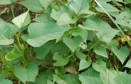 红薯长得很茂盛,一片接着一片,碧绿碧绿的,微风一吹惊奇一片涟漪。地里还有些小截的干枯的玉米杆,红薯的叶子小片小片的。它的叶子是可以食用的。