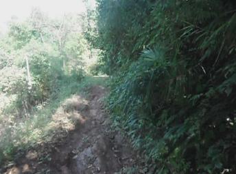 路旁有几从粽叶,粽叶长的郁郁葱葱的,走 去是一棵许久都未开花结果的树,一条泥泞迂回的小路走去就可以到达菜园地。路旁生长着一些深黄色的花。菜园里有白菜、红薯、萝卜、生菜……