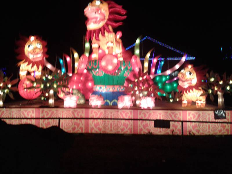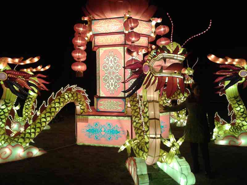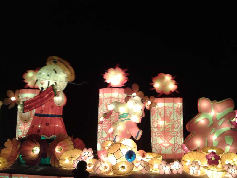接下来一个人工湖出现在了我面前,湖中的组组彩灯更是炫彩夺目,“八仙过海”、“鲤鱼跃龙门”、“童子观音”……看得我是眼花缭乱。我最喜欢的是还要数这“鲤鱼跃龙门”。长达20多米的长龙横卧在湖面之上。口中的龙珠处还不停的喷水,身边纷纷跃起的鲤鱼更是栩栩如生。看得我不停赞美。