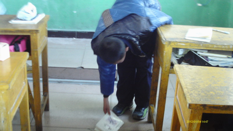 又是一个快乐的课间,我和伙伴在位子上神聊。忽然,我看到了他,他似乎无事,在班中来回走。“啪”的一声,书掉了,谁的书掉了呢?这似乎与我无关,我继续聊我的天,但他却停止了脚步,走过去,弯下腰,捡起书,放回原处。刹那间,我觉得我是多么的渺小,而他则变得那么高大。在这小小的举动中,我看到了他的美!