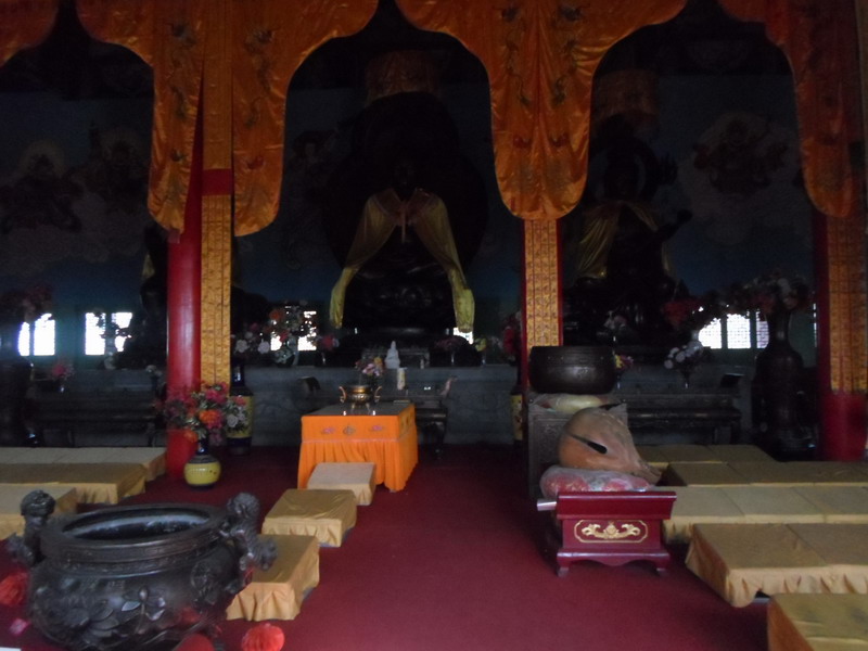 这是正觉寺的大殿供奉的是三尊大佛!至于是谁?因为名字太长,我也记不清楚啦!不过看着这些陈设和塑造在庙里的佛!顿时心生敬畏!这些佛塑造得栩栩如生,好像活的一般。他们有的慈祥和蔼,有的严肃认真,有的.....