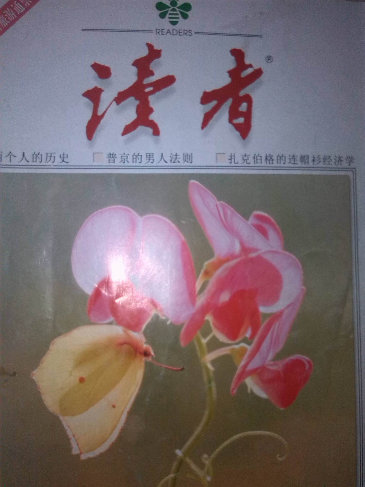精致的封面,精美的插图,厚实的质感,更有精彩美妙,神奇无限的文字使我爱不释手,如痴如醉。第一次接触它是从朋友那里,我的朋友有整套整套的,第一次看到,那时侯我就对它情有独钟。朋友见我喜欢,于是借给我好多套。回到家,我就一个劲的看,不到三天,我就看完了好几套。后来我就自己攒零用钱,买了一套,从此,我便爱上了<<读者>>。