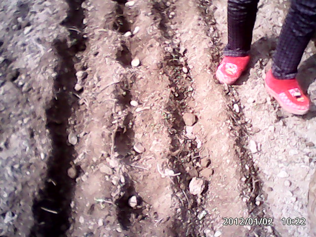 妈妈吃完饭就开始切土豆了,把大的切小点好种下去。我吃完饭也帮妈妈了。切完土豆我们就往目的地出发了,地里的土很松软很适合播种。我拿锄头挖地可妈妈不让硬要让我放土豆。