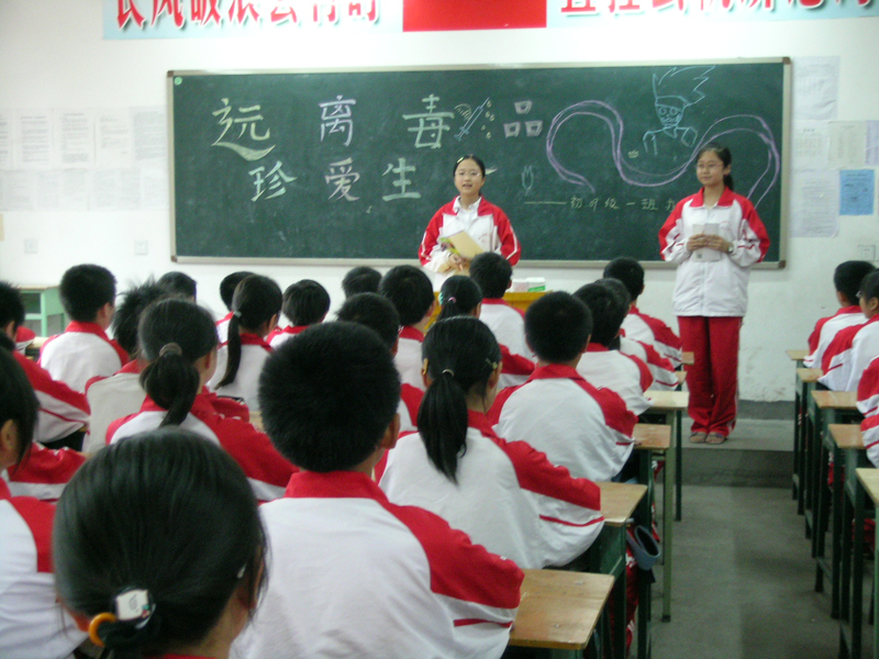 在班上,禁毒已经深入同学心中。你们看,同学们正在认真地学习禁毒知识——认识毒品,了解毒品,拒绝毒品,远离毒品,是我们这次活动的主题。主讲的同学在认真地讲,同学们也在专心地听,大家都认识到一定要"远离毒品,珍爱生命"……