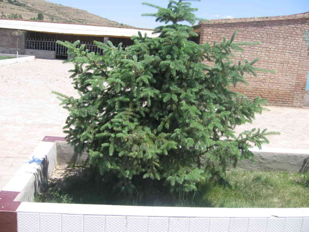 教学楼前的几棵松树,就像一位站岗的叔叔,风吹过它遥遥摆摆,它好像在说:“小朋友,你们好,远处看时好像穿上了一身绿色的一裳。