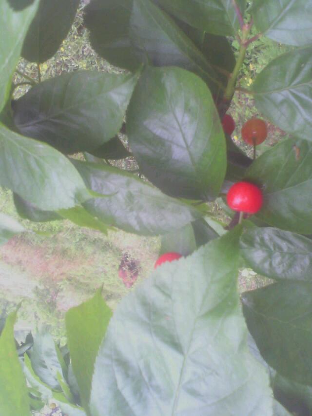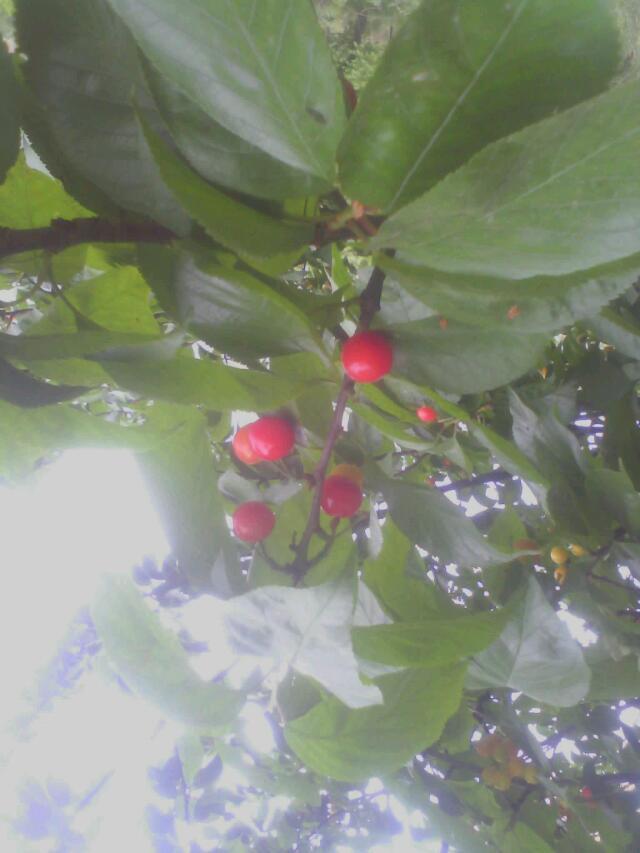 随着气候的上升,樱桃树结果了。看着红红的樱桃在树叶间藏匿,就像一个调皮、可爱的机灵鬼!哇撒,好想去啃一口!