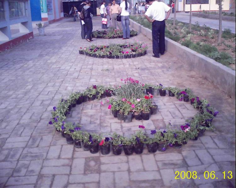 两基复验不仅看学校的硬件配备,更主要的是看学校的绿化,由于我校地处盐碱地带,建校十多年来,绿化始终跟不上来,这次普九,学校下大力气,拿出仅有的资金买来这些花草,装点美化校园。