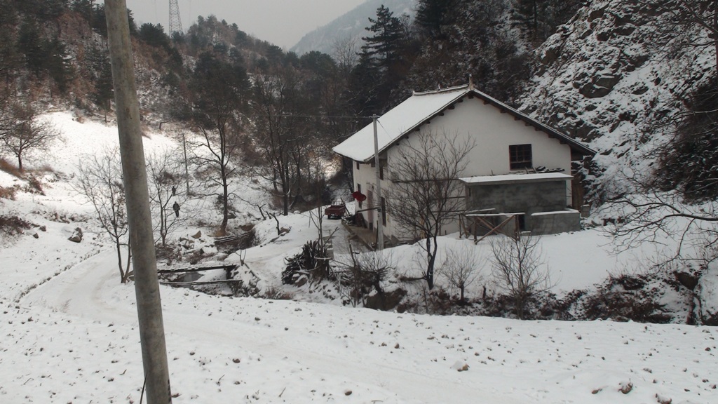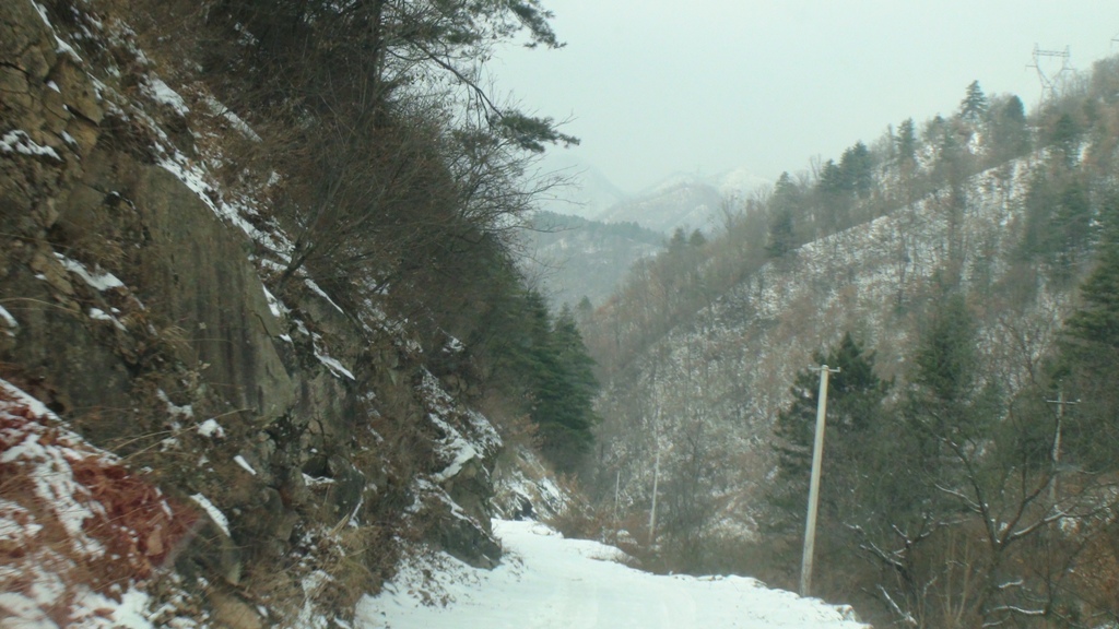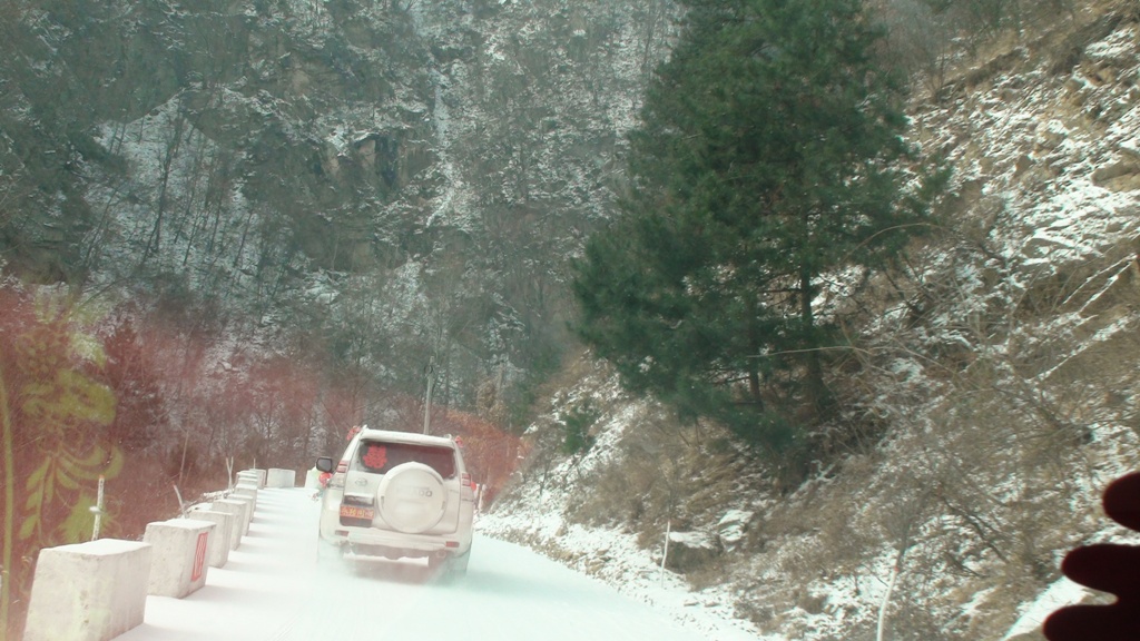 山路崎岖,且被大雪覆盖,穿梭于这个雪白的世界中,心都变得好纯、好静、好安逸。