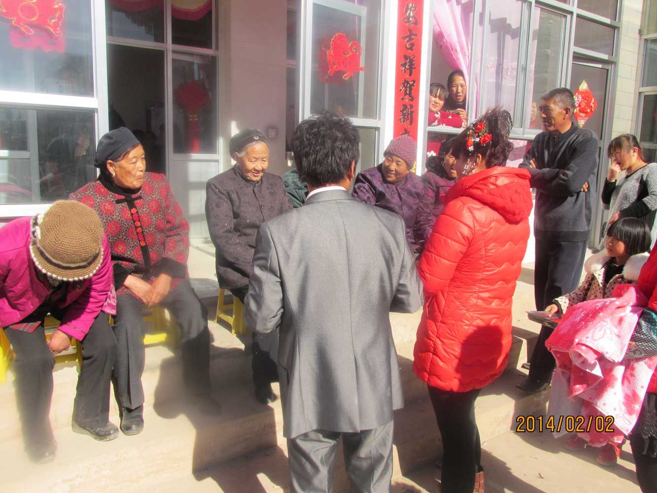 到了哥哥家里,我的新嫂子已经准备好了,我和弟弟一人坐了一个床头就一边聊天一边等,到了大约7点多的时候,新娘被接了出去,我们的任务也就完成了,所以我们就出去看过程了,只见订新郎和新娘站在一条毯子前,先给父母拜,然后给长辈们拜,我数了数,发现长辈们不是多,是太多了,有二、三十几个,看到这儿,我不禁有点无语了,这要是拜下来,还不得被累死。拜完后我们就去吃席了。吃完席后就又回到家里,老一些的人们进了屋里喝酒,我们年轻一辈的就在院子里唱卡拉OK了,还有一部分拉住了哥哥和新嫂子问一些知心话之类的。